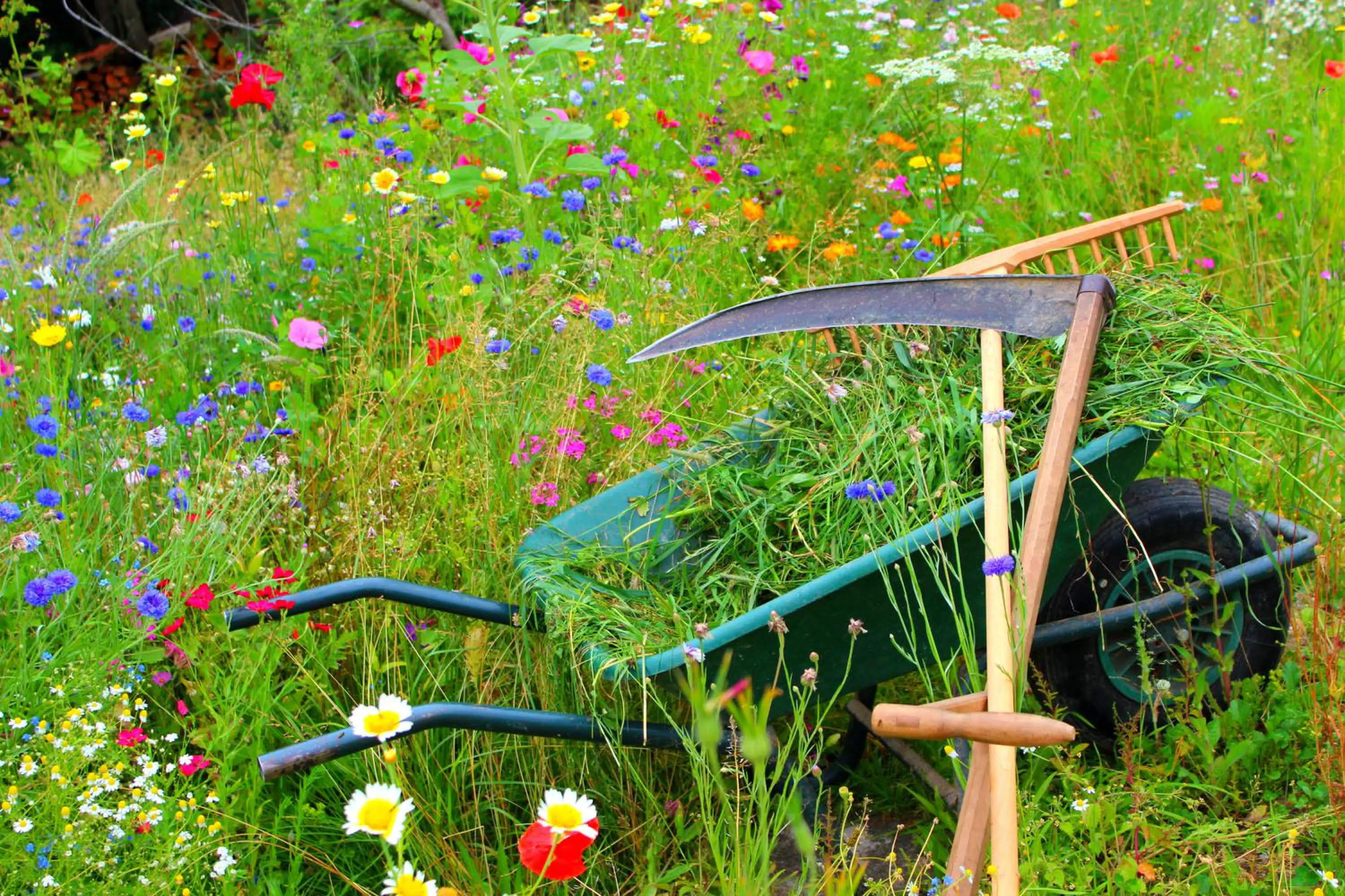 - Rasen tief mähen