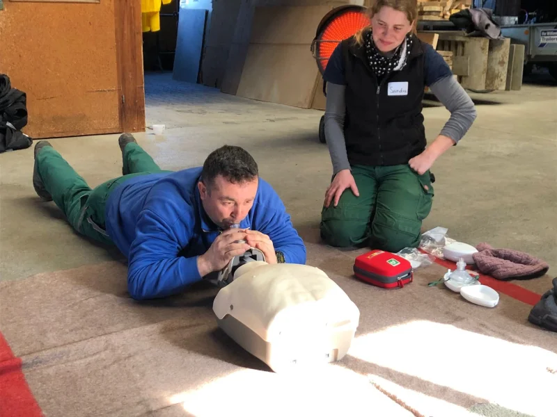 Im Rahmen eines Tageskurses bei uns im Betrieb wurde der Wissensstand unserer Mitarbeiter im Bereich Nothilfe aufgefrischt.