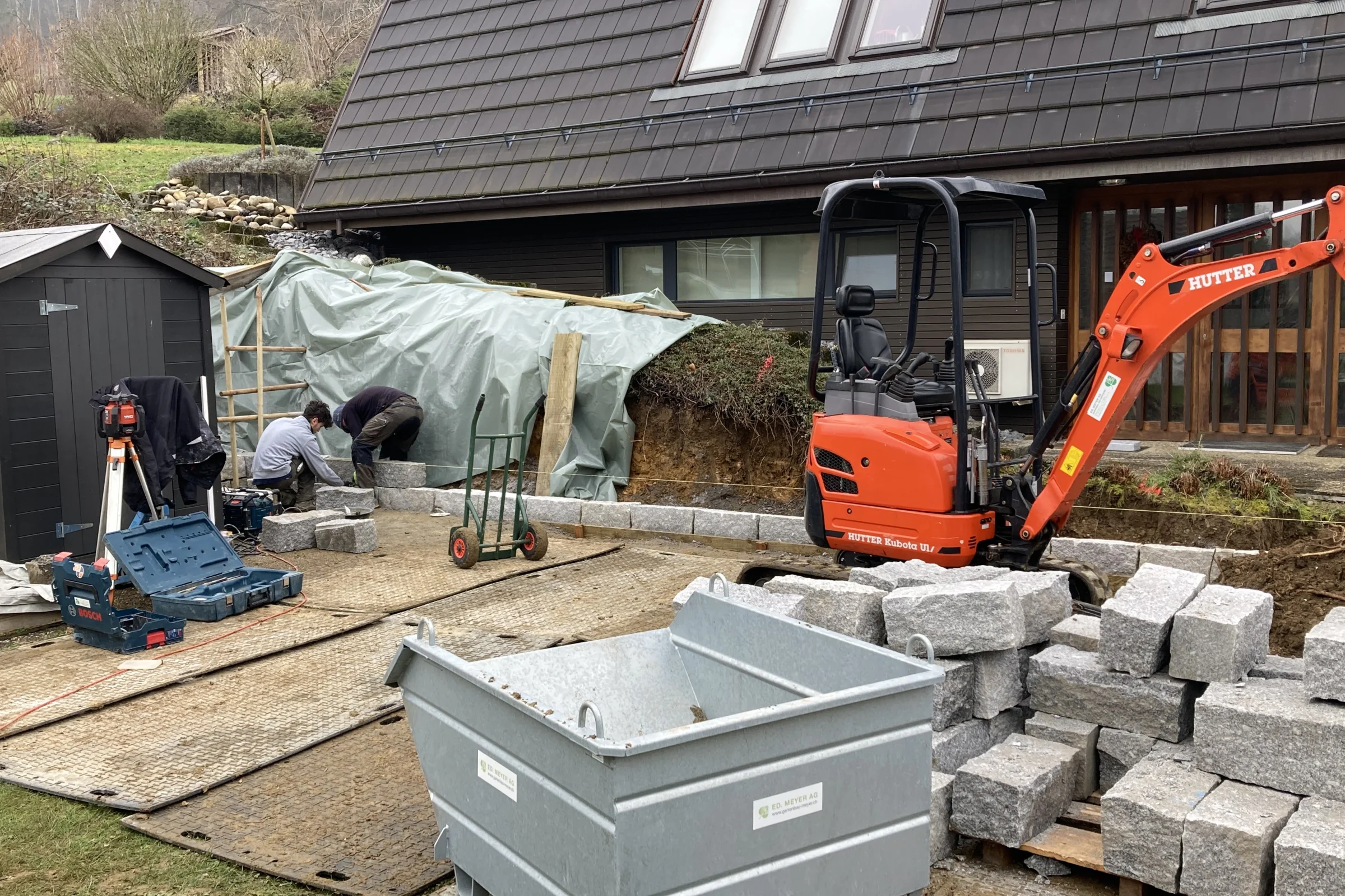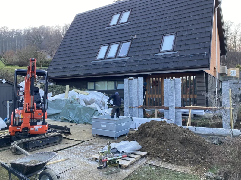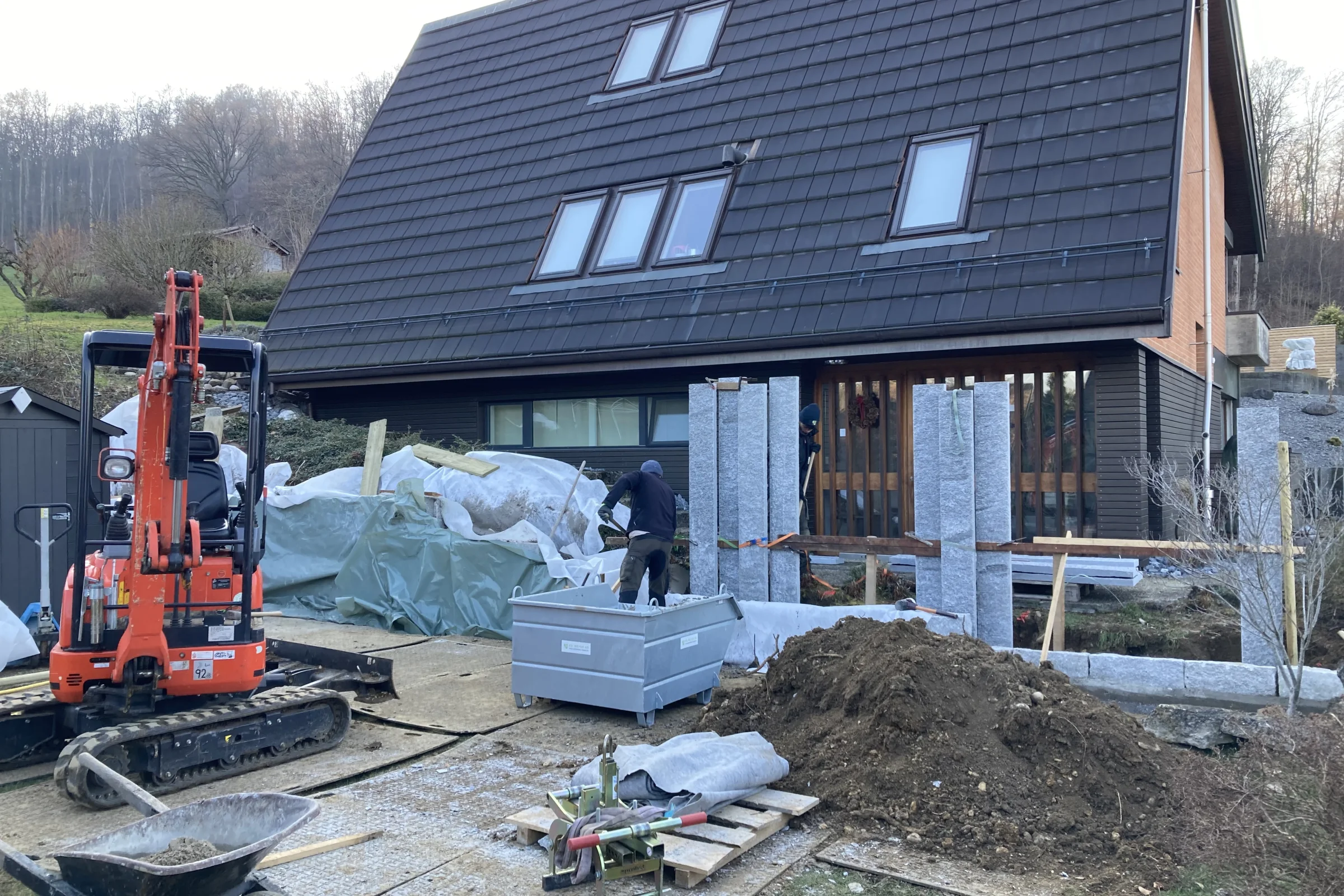 Die abschliessende Bepflanzung mit diversen Blütensträuchern zwischen den Granitpalisaden folgt dann im Verlaufe dieses Frühlings.